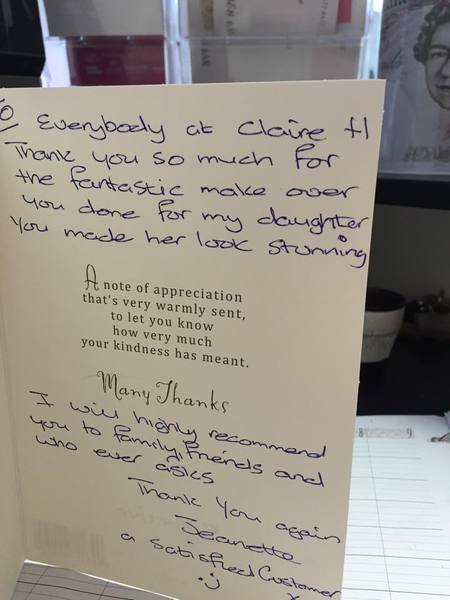 Kelly says: "very friendly girls, the service is excellent and the staff go out their way to help, i love claires place and would never go anywhere else, i go in the salon in some states and leave stunning!!!